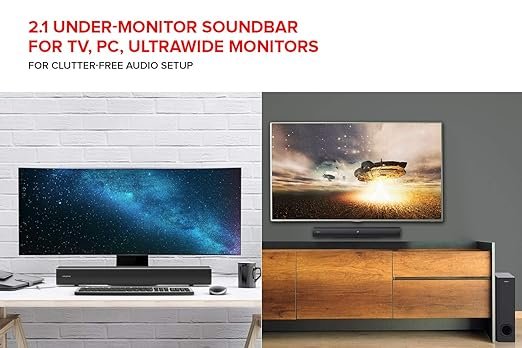 - Clutter-free, under-monitor sound bar for computer and tv: fits perfectly under a pc monitor and blends naturally into any room interior with its sleek, subtle design, the sound bar also comes with a wall mounting kit that allows you to install the Creative stage easily onto your wall with included instructions and hardware