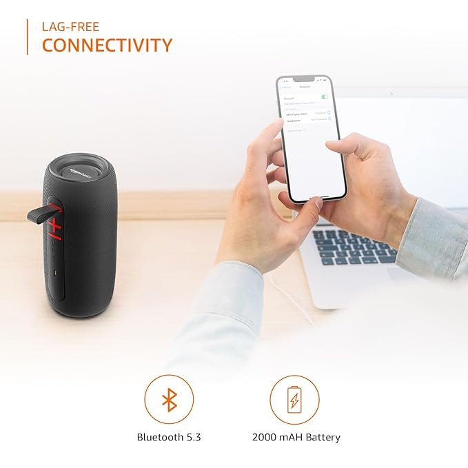 - POWERFUL SOUND: Amazon Basics 20W portable bluetooth speakers packs a powerful bass giving you the immersive sound experience;QUICK PAIRING: Equipped with Bluetooth 5.3 technology, the speaker pairs quickly with Android and iOS devices