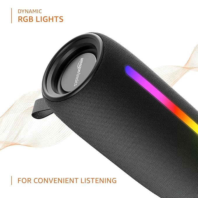 Amazon basics Bluetooth 20W Speaker, with TWS Function, Powerful Bass, BT 5.3, MicroSD Card Slot, RGB Lights, AUX Input, USB Support, and in-built Noise Cancelling Mic (Black)