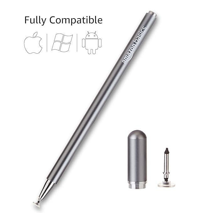 Amazon Basics Capacitive Stylus Pen AB-S2 for iOS and Android Touchscreen Devices, Fine Point Disc Tip, Lightweight Metal Body with Magnetic Cover, (Grey) (UNBOXED)