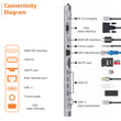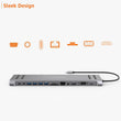 - Full-featured and usable docking station - Function Charging, data transfer, audio output, ethernet, card reader, USB-C (100W PD male)×1, USB 3.0×1,USB2.0*3, USB-C×2, SD×1, TF×1, HDMI×1,VGA×1, RJ 45×1, 3.5mm JACK×1.