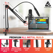 - šļø [COMPLETE MIC SET]: - Comes with: 1 x condenser microphone 1 x metal shock mount 1 x adjustable suspension boom arm stand 1 x pop filter 1 x foam mic cover 4 x zip ties 2.5m USB A to B cable 1 x tripod 1 x USB Type A to Type C connector
