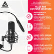 | Included Components | ā1 x adjustable suspension boom arm stand, 1 x condenser microphone, 1 x metal shock mount, 1 x pop filter, 1 x foam mic cover, 4 x zip ties, & 2.5m USB A to B cable, 1 x Tripod, 1 x USB Type A To Type C Connector |