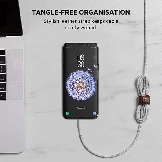 - LEATHER STRAP: It's not just for looks, the stylish leather accent helps keep your cable organized when not in use. No more messy cables at your desk or reaching into your bag to find a tangled cable.