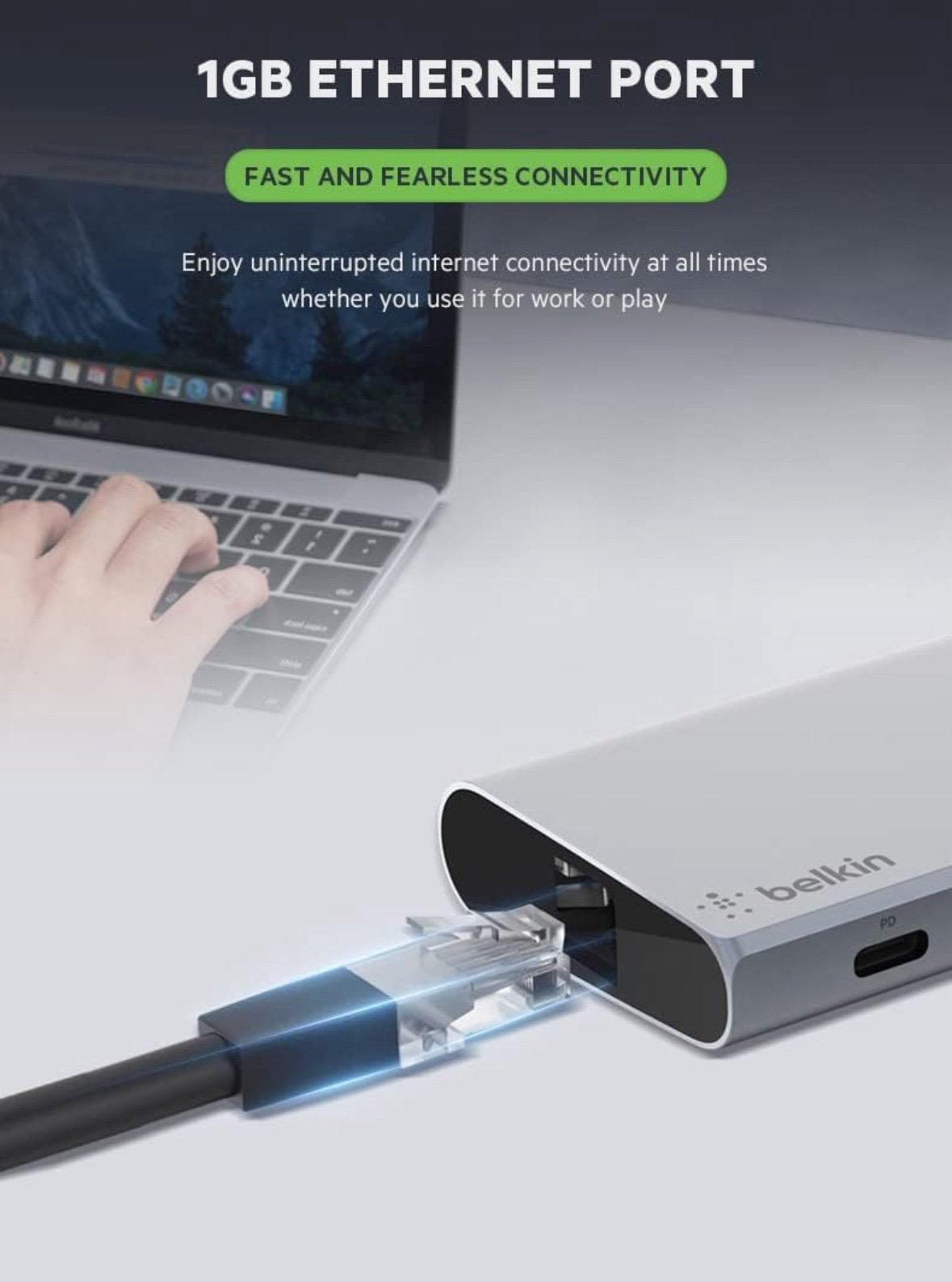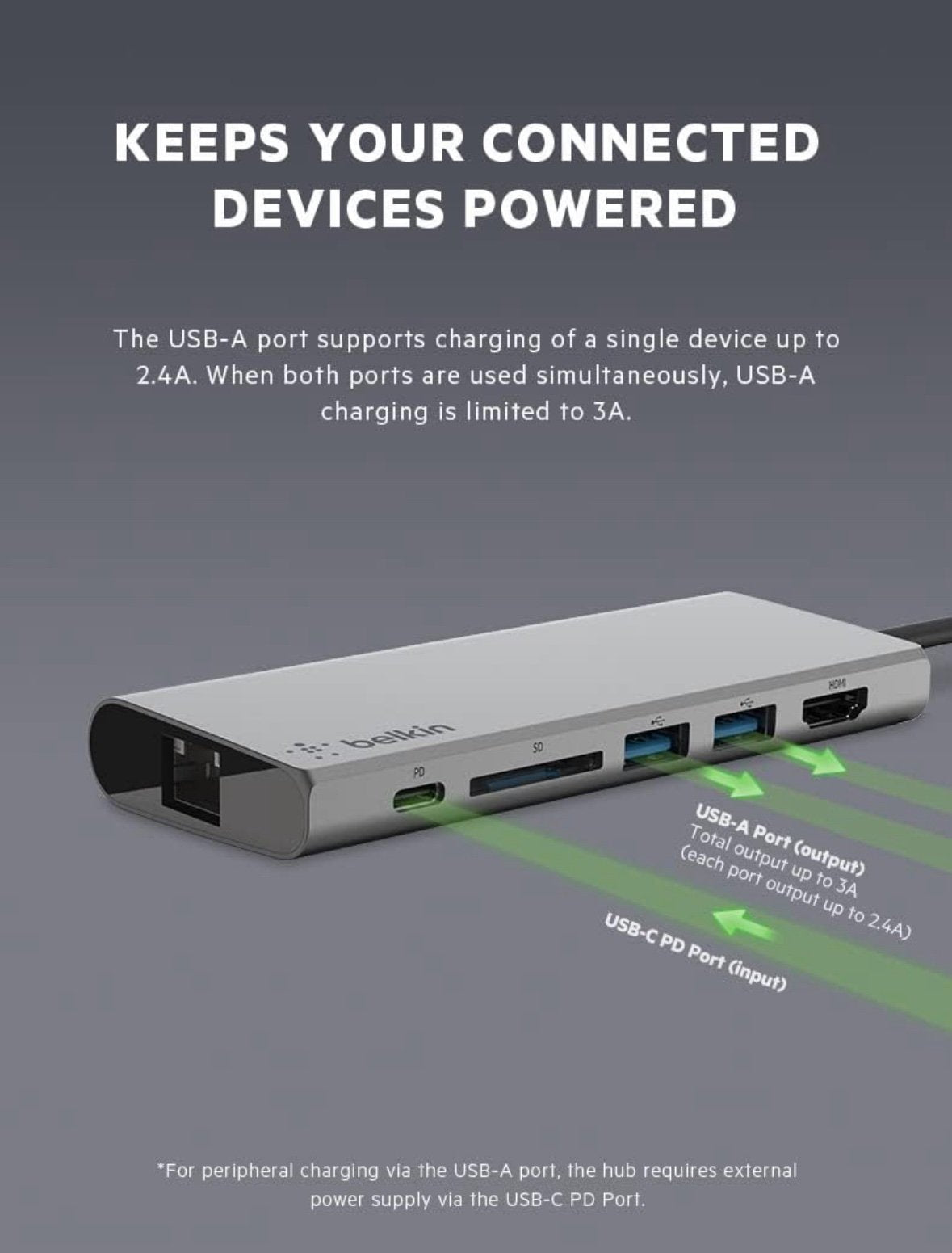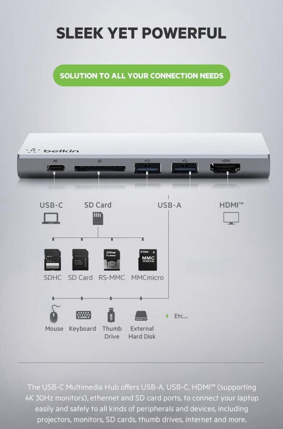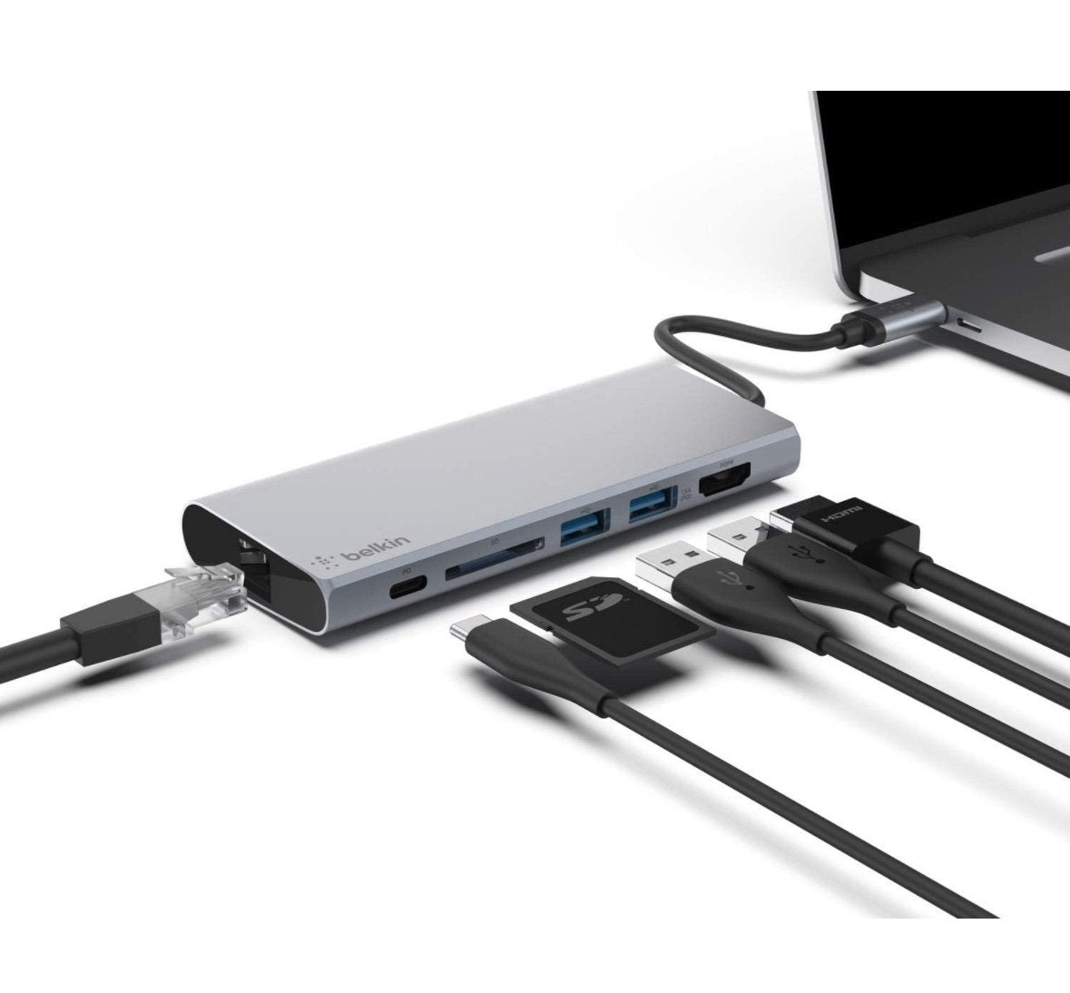 Belkin USB C 6 in 1 Hub Adapter with 60W Power Delivery, 5 Gbps Transfer Speed, Ethernet Port, 4K Hdmi, USB C, Sd Card and 2 USB A 3.0 & 2.0 Data Ports, for MacBook/Ipad and More Grey