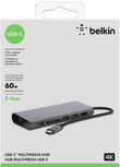 Belkin USB C 6 in 1 Hub Adapter with 60W Power Delivery, 5 Gbps Transfer Speed, Ethernet Port, 4K Hdmi, USB C, Sd Card and 2 USB A 3.0 & 2.0 Data Ports, for MacBook/Ipad and More Grey (UNBOXED)