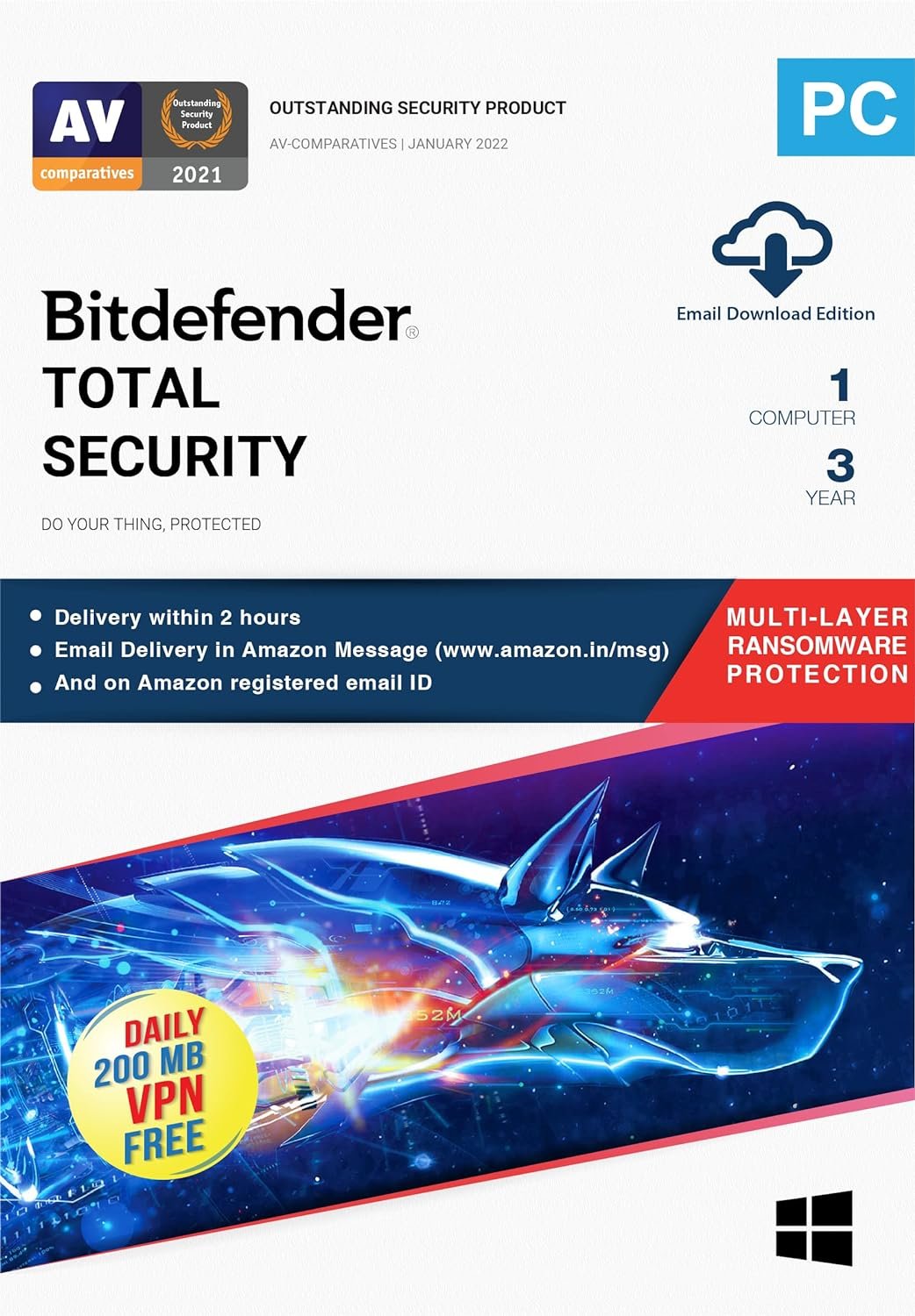 Bitdefender - 1 Computer,3 Years - Total Security | Windows | Latest Version | Email Delivery In 2 Hours- No Cd | (UNBOXED)