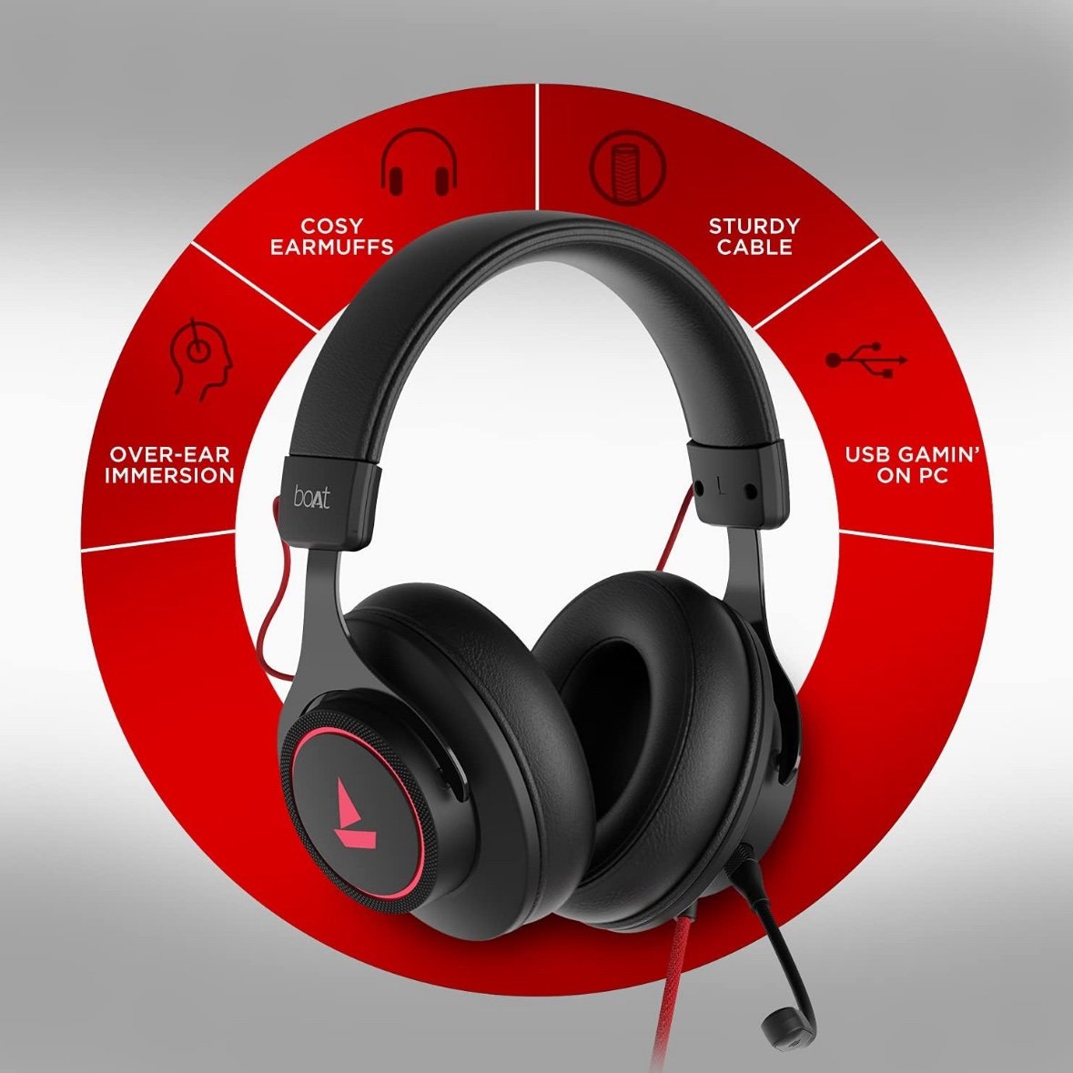 boAt Immortal IM1000D Dual Channel Gaming Wired Over Ear Headphones with mic, 7.1 Channel Surround Audio, Dolby Atmos, 50mm Drivers & RGB Breathing LEDs(Black Sabre)