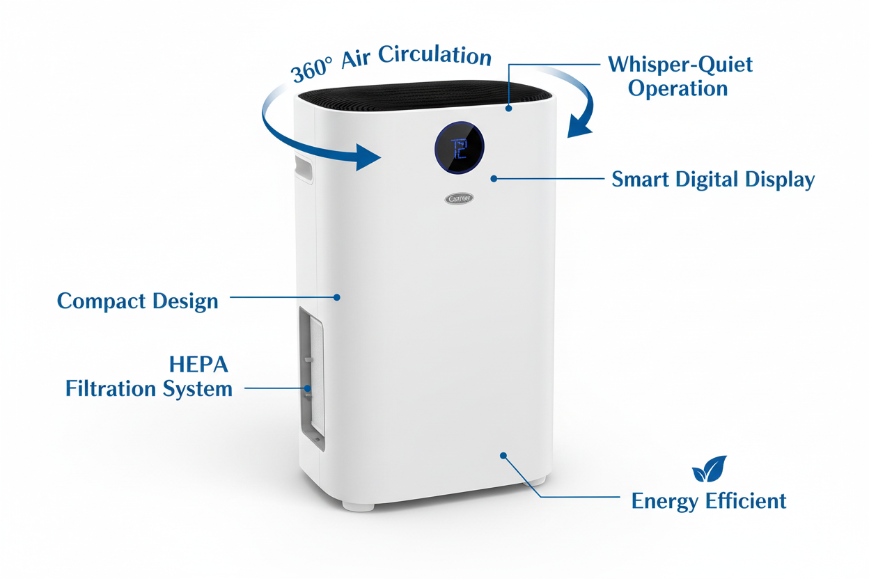 Carrier AP2006 Room Air Purifier with True HEPA | PM2.5 Dust, Smoke & Allergy Protection