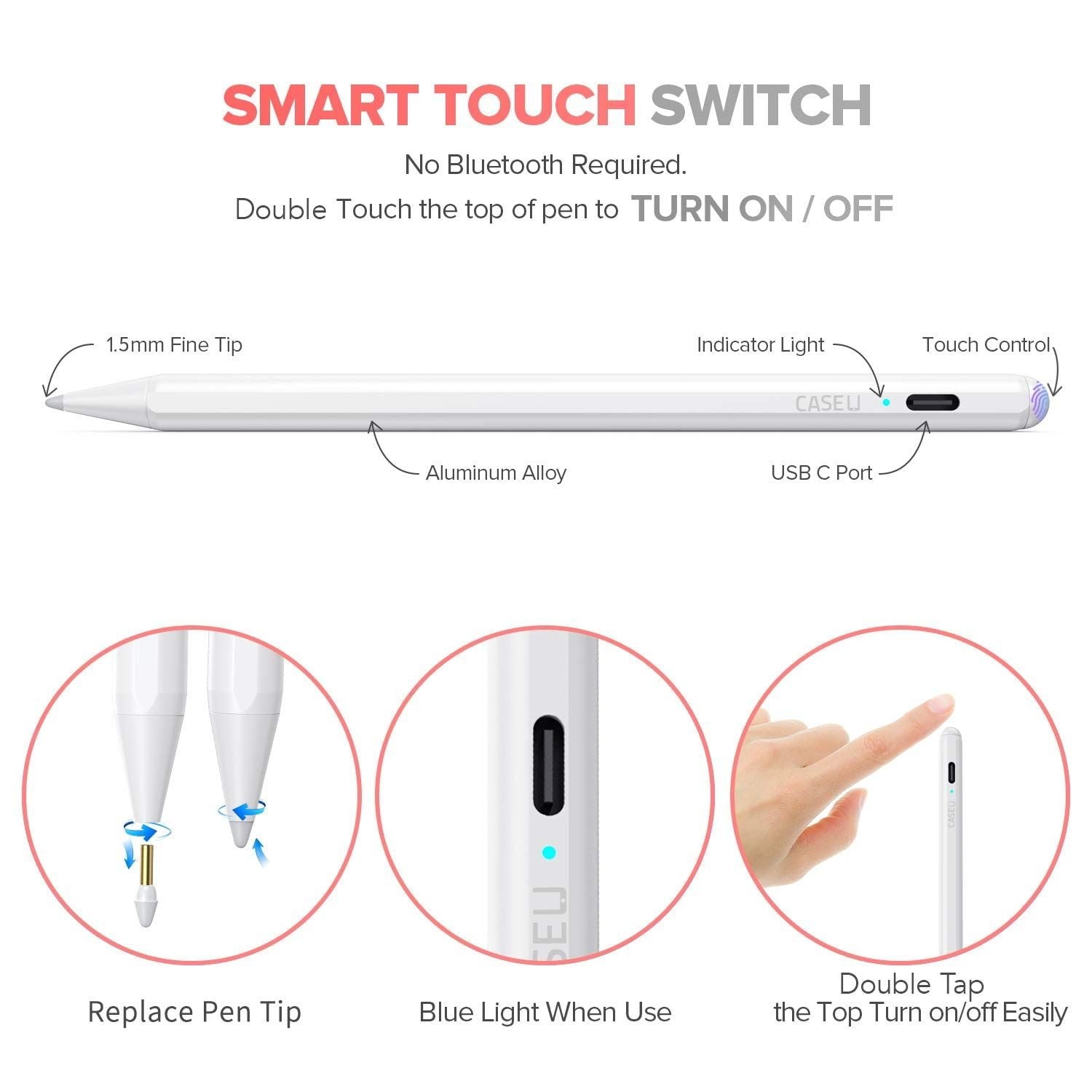 CASE U Stylus Pen, Stylus Pencil with Tilt Sensor & Palm Rejection for iPad (2018-2021) iPad 6/7 /8 & 9 Gen; iPad Pro (11/12.9"), iPad Mini 5 & 6, iPad Air 3rd & 4th Gen (Stylus Pen, White)