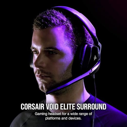 Corsair VOID Elite Surround Wired On Ear Premium Gaming Headset with Mic with 7.1 Surround Sound Discord Certified Works with PC, Xbox Series X, Xbox Series S, PS5, PS4, Nintendo Switch (Carbon) (UNBOXED)