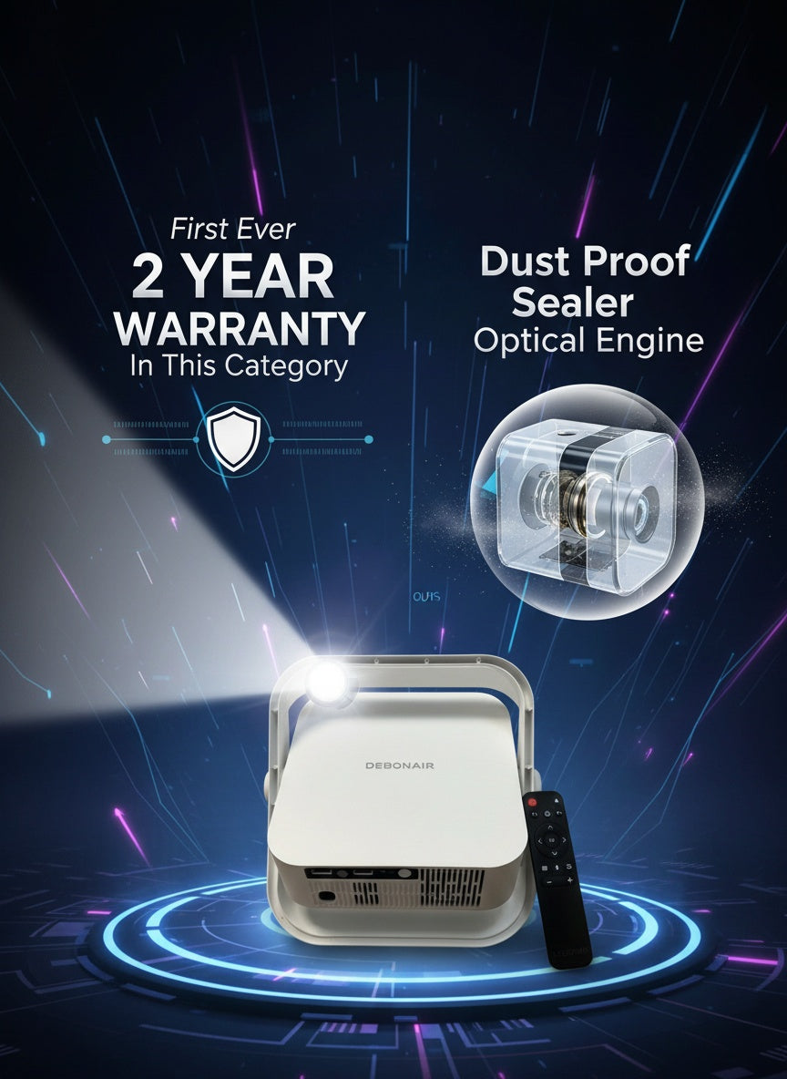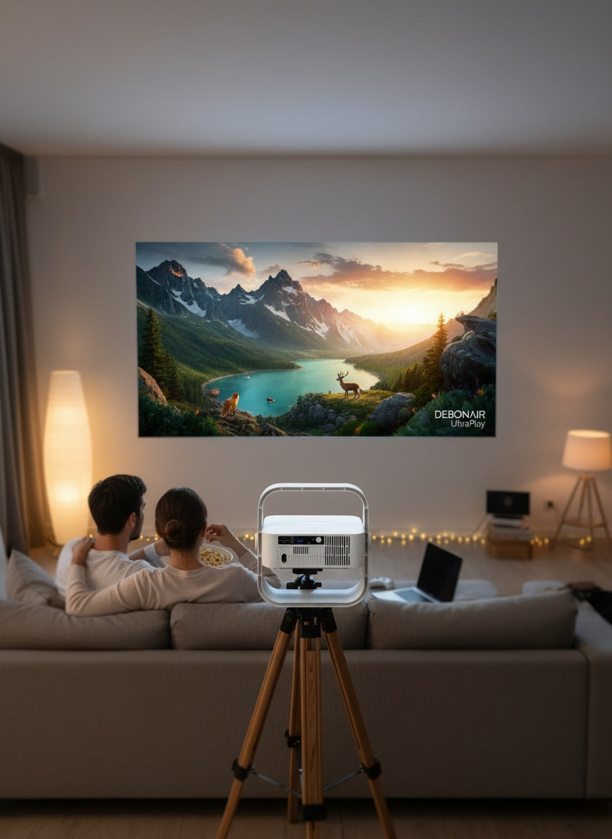 DEBONAIR UltraPlay Full HD Native 1080p Android Projector | 4K HDR Support | 17000 Lumens | Auto Focus, Screen Fit & Obstacle Avoidance | Dust Proof Engine Dual WiFi BT 5.0 | 250" Display USB & HDMI 2 Years Warranty.