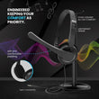 - Rotating Microphone: The microphone can easily rotate 180° and can be worn on either the left or right side. When not in use, it can be tucked out of the way. The mic arm is strong and flexible, allowing you to adjust it to your preferred angle for better sound quality and reduced background noise.