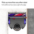 Picks up more than any other robot on all floors: Full-width brush bar cleans right to the edge. Engineered with a wide diameter to reduce tangling. Unlike side sweepers that flick dirt away, Dyson sucks it up: One of the biggest challenges for any robot. Solved. Sensors detect edges. An extending side duct automatically redirects suction, powerful enough to capture dust and debris right up to the wall. 360° Visual navigation: Sees where it needs to clean and remembers where it’s been – just like you would. Reaches where you can’t: A low profile allows the robot to clean under furniture, while an LED light ring helps it navigate in low light and corners. Gets where it needs to clean: Advanced dual-link suspension allows the robot to climb steps up to 21mm and get where it needs to clean. Avoids getting stuck. Intelligent obstacle avoidance: Vision system to pinpoint the robot’s location for intelligent navigation. Four power modes to clean your way: Boost mode delivers maximum suction. Quiet mode enables low-noise cleaning. Quick mode optimises speed. Auto mode intelligently adapts suction power to dust levels. Automatically recharges itself: Intelligently monitors battery level and returns to the dock to recharge when needed, before going back to finish the job. Hygienic bin emptying: One-touch ejection mechanism drives dust and debris deep into your bin in one action, so there’s no need to touch the dirt. A lifetime of easy maintenance. Clean after clean. Your robot will tell you when it needs attention, and guide you with simple on-screen instructions. Empty the bin in a single, hygienic action. The brush bar and lifetime filter can be washed, ready to go again.