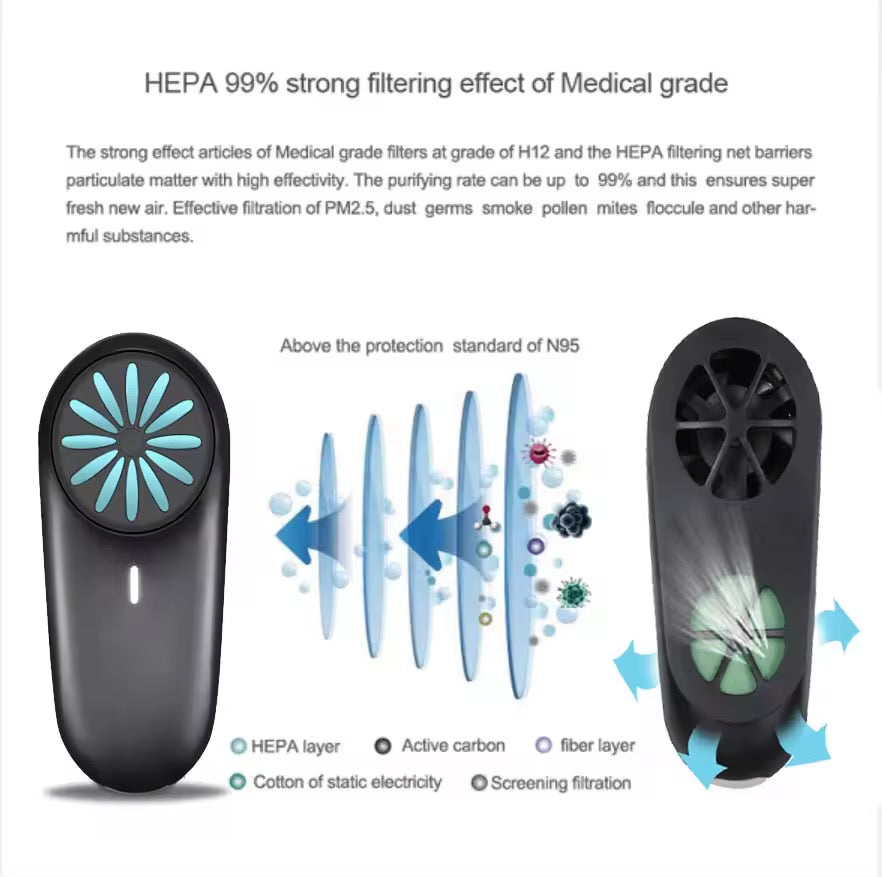 - Comfortable & gentle airflow: The fan works on a negative-pressure air intake principle — meaning it does not blow air directly onto your face. Instead, it gently draws air inside, avoiding any harsh airflow sensation. This makes it especially comfortable for children, elderly users, or anyone sensitive to strong air currents or prone to rhinitis or throat irritation.