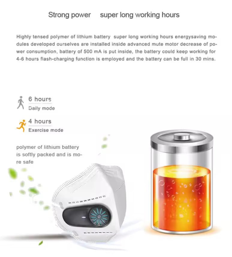- Material: Nylon mask + activated carbon filter + ABS plastic fan