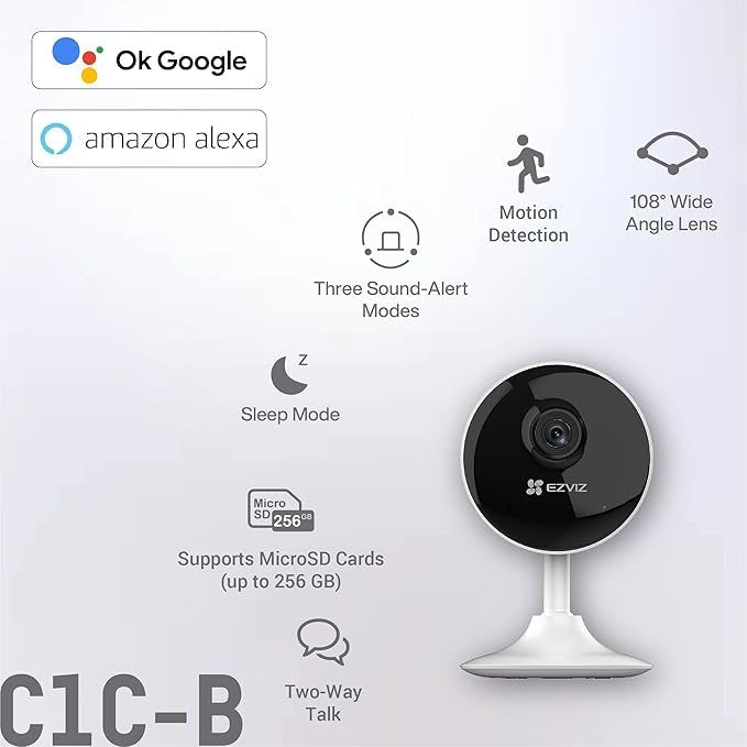 EZVIZ by Hikvision|C1C-B WiFi Indoor Home Smart Security Camera| 2 Way Talk 1080p Full HDl Privacy Protection| Night Vision| Motion Detection| Alexa & Google, White (UNBOXED)
