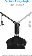 - 【 Versatile Design】 Featuring a 180° rotating arm, vertical tilting, and a height riser with 4" of vertical extension, enabling creative shots from high to low angles with ease