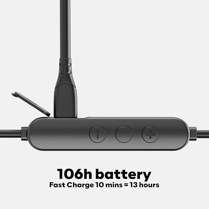 Powerful 10mm drivers & chipset for deep bass and PRO audio Upto 106 hours battery life for non-stop music with type C input Upto 10 hour playtime with a 10 minute charge Upto 30 feet of seamless connectivity Voice assistant with Google & Siri enabled Splash proof water resistant Enjoy your favorite games using the Low latency feature and eliminate all lags Environmental Noise cancellation & suppress all the background noise