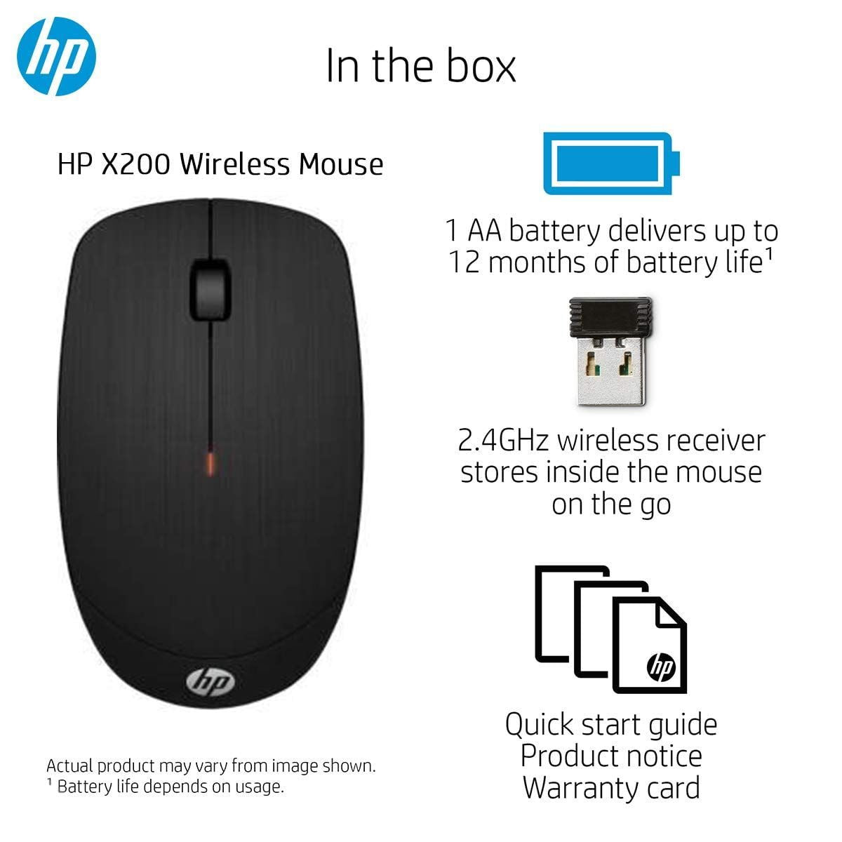 • Stay productive wherever the day takes you without wires to tie you down. The HP Wireless Mouse X200 is designed for ultimate comfort control and consistency, this wireless mouse is the perfect companion for everything you need to do.