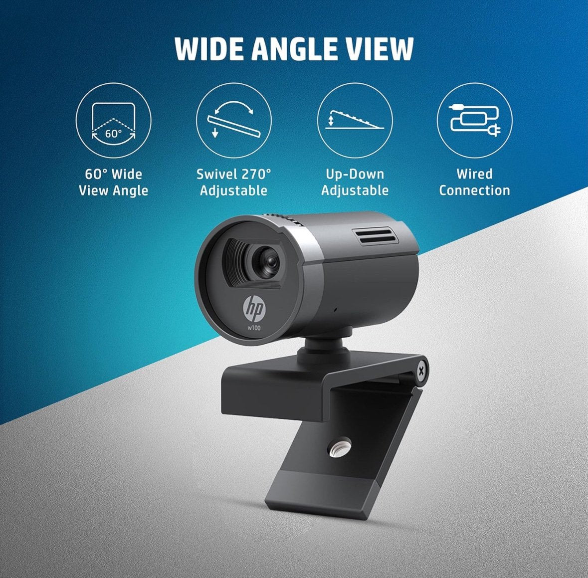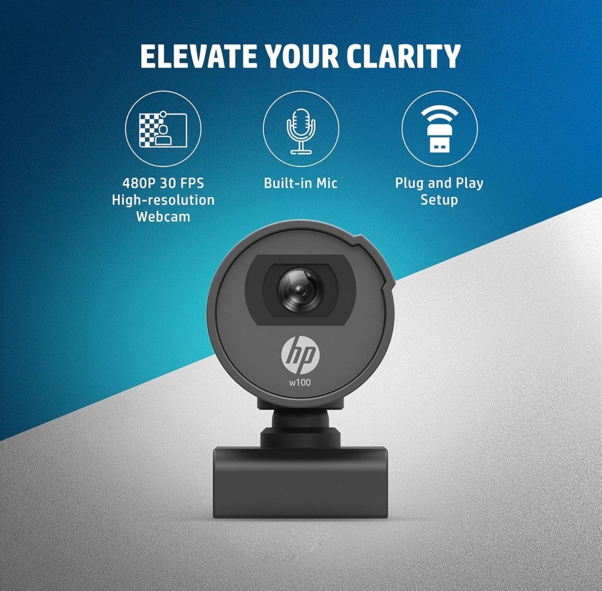 HP w100 480P 30 FPS Digital Webcam with Built-in Mic, Plug and Play Setup, Wide-Angle View for Video Calling on Skype, Zoom, Microsoft Teams and Other Apps (Black)