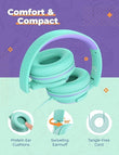 iClever Headphones for Girls with Mic Kids Headphones Wired, [2 Pack] 94dB Safe Volume Limited, Sharing Splitter, Tangle-Free Foldable Stereo Child Headset for Online School/Travel/iPad, Green&Blue (UNBOXED)