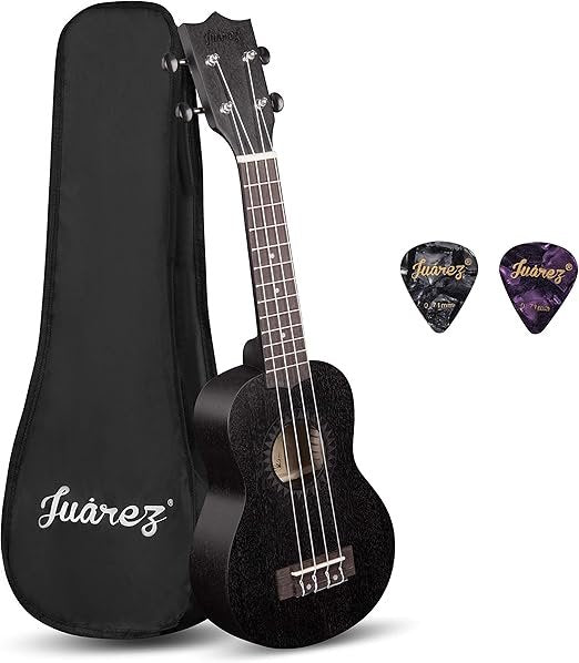 JUAREZ 53.34 cm (21") Soprano Ukulele Kit, AQUILA Strings, Sapele Body, Rosewood Fingerboard, Matte Finish, with Bag and Picks, Black", JRZ21UK/BK