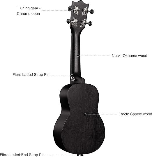JUAREZ 53.34 cm (21") Soprano Ukulele Kit, AQUILA Strings, Sapele Body, Rosewood Fingerboard, Matte Finish, with Bag and Picks, Black", JRZ21UK/BK (UNBOXED)
