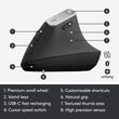 MX Vertical is an advanced ergonomic mouse that combines science-driven design with the elevated performance of Logitech MX series. The natural handshake position of MX Vertical is made to reduce wrist pressure and forearm strain associated with repetitive stress injury (RSI) and carpal tunnel syndrome (CTS).* The unique 57 degree vertical angle has been optimized for an ergonomic posture without compromising a pixel of performance. MX Vertical features a 4000 DPI high-precision sensor, resulting in 4x less hand movement 1 and reducing fatigue.** And the cursor speed switch allows you to instantly adjust DPI speed and accuracy with the touch of a button. MX Vertical stays powered for up to four months on a full charge and gets three hours of use from a one-minute quick charge.*** (*As compared with a traditional non-vertical mouse. ** As compared with a traditional mouse with 1000 DPI sensor. ***Battery life may vary based on user and computing conditions.).