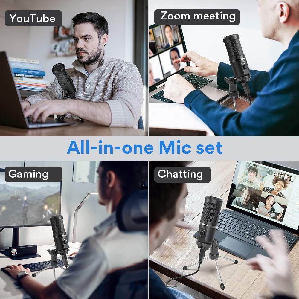 Maono AU-PM461TR USB Condenser Mic for PC and Singing, Recording Microphone with Mic Gain for Gaming, Podcast, Studio, Vlogging