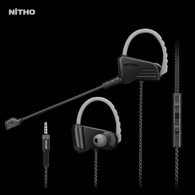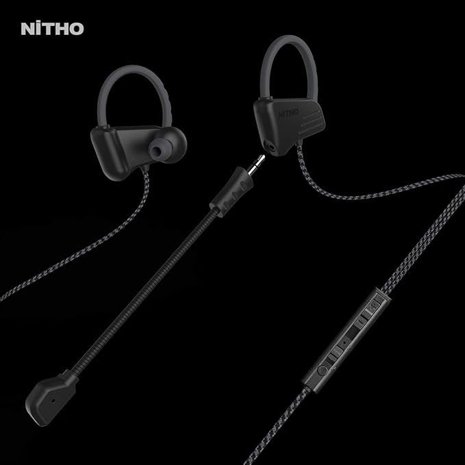 - Gaming in-ear stereo earphones with removable headband and omnidirectional microphone, compatible with all audio devices with 3.5 mm mini jack