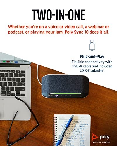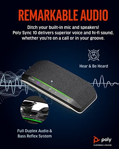 Poly Sync 10 USB Speakerphone - Two-in-One Portable Speaker for Audio/Video Conference Calls & Music - USB Powered - Works with Teams (Certified), Zoom & More - Dual-Mic, Full-Duplex Audio (SEALED PACK)