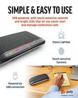 - EASY TO USE: Plug-and-play USB-A or USB-C connectivity powers it, so you never have to worry about battery life; simple, touch-sensitive controls let you easily manage conference calls, while highly visible LEDs and light bar let you see call status from across the room