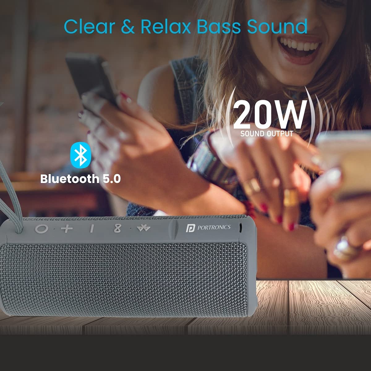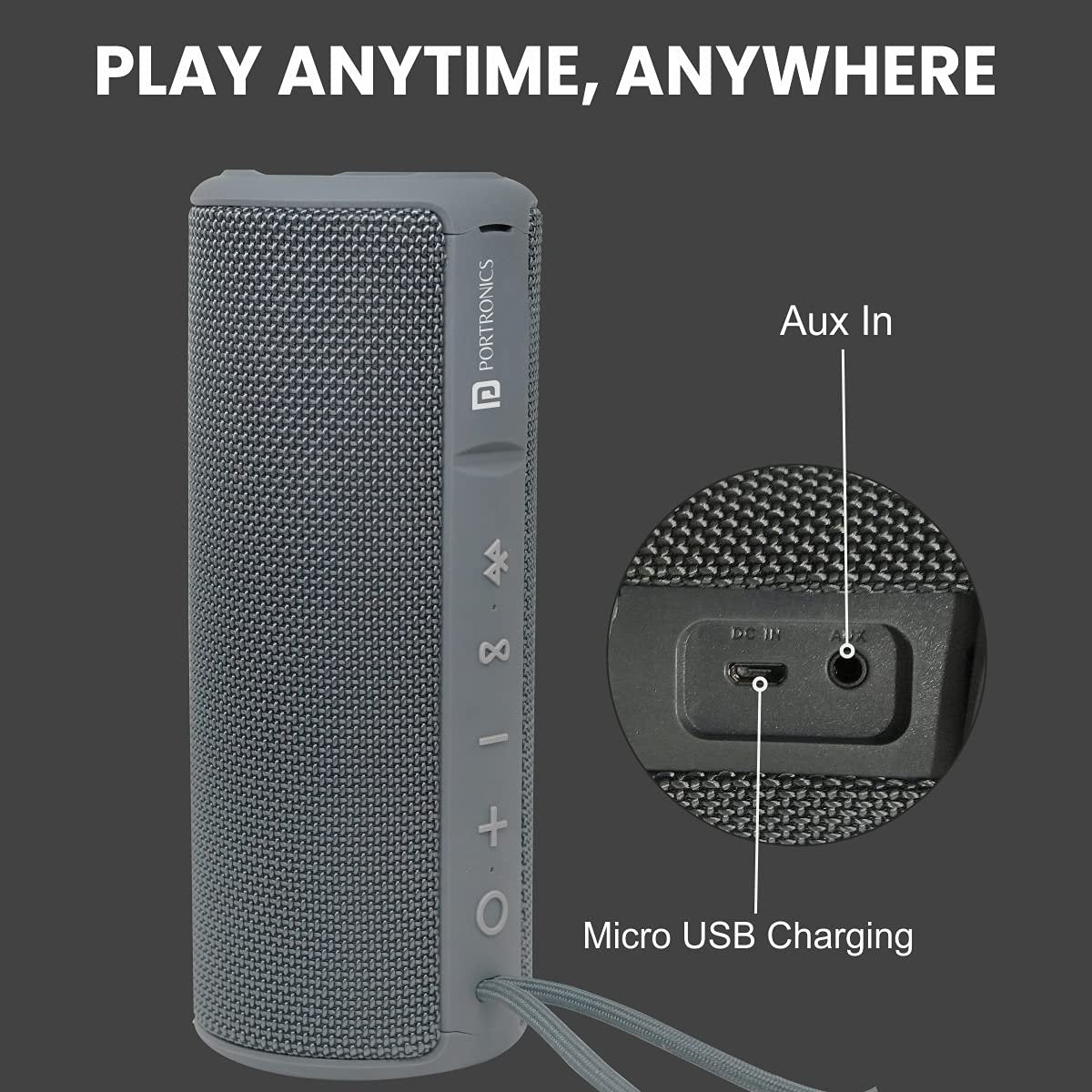 Portronics Breeze Plus POR-545 20W Bluetooth 5.0 Portable Stereo Speaker with TWS, Aux in, Water Resistant, 2000mAh Battery, Grey