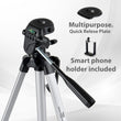 90 degree vertical platform, Quick release leg locks non-slip rubber feet, 3-way panhead quick release plate, Mid-laver bracing system, Geared elevator. Powerpak Photo-X5 4.5 Feet Flat 53 inches Tripod Stand with 3-Way Panhead for Digital DSLR, Video Camera, Camcorder.