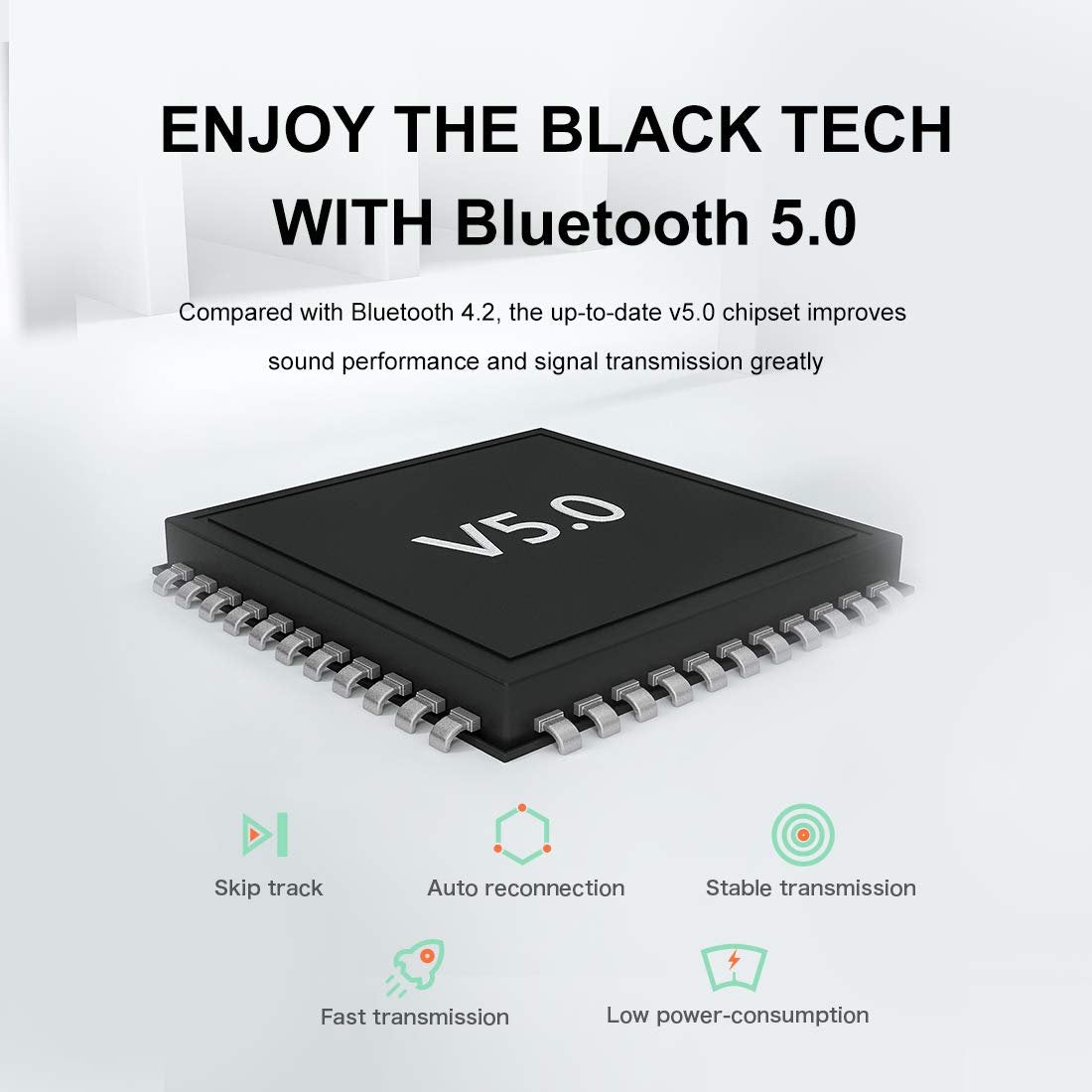 - đEnjoy the Black Tech with BT 5.0âCompared with BT4.2, the up-to v5.0 chipset improves sound performance and signal transmission greatly. Compact, comfortable and classy earbuds with decent sound quality.