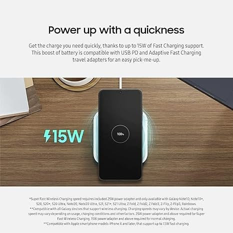 SAMSUNG 15W Wireless Charger Single, Cordless Super Fast Charging Pad for Galaxy Phones and Devices, USB C Cable Included, 2022, US Version, Grey (UNBOXED)