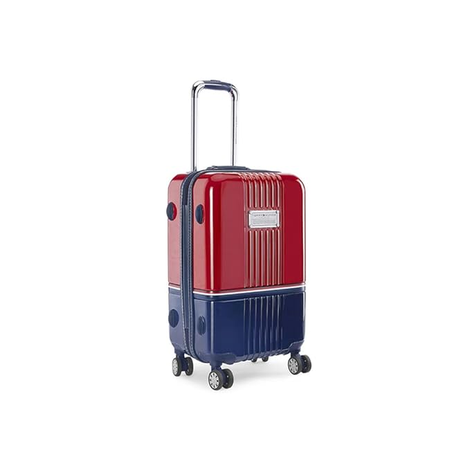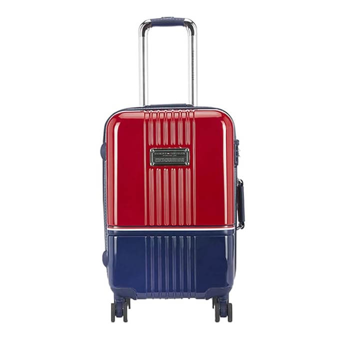 Tommy Hilfiger Twins Plus Hard Plastic Luggage Trolley Bag for Travel - 77cms, Red & Navy Blue Large 8 Wheel Unisex Bag TSA Lock