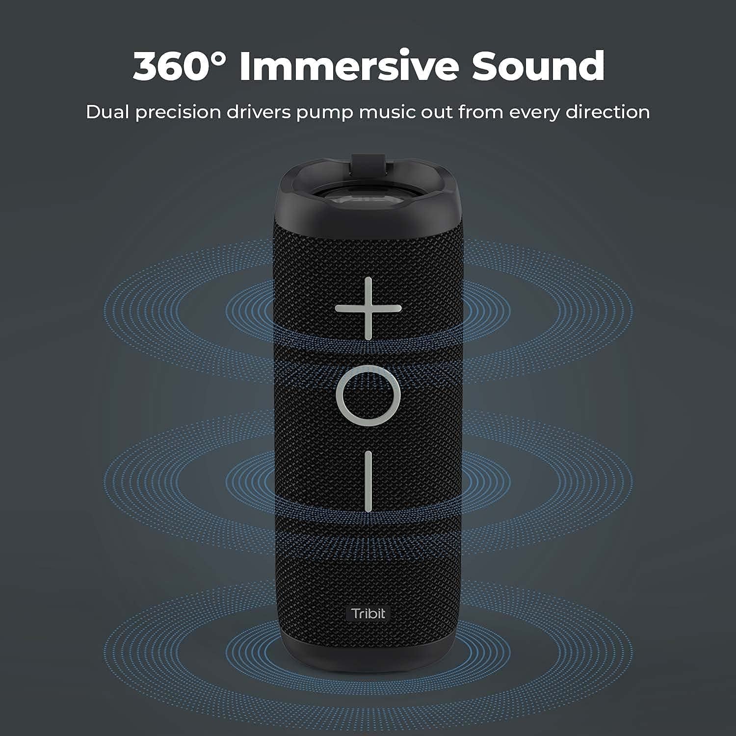 Tribit StormBox 24W Bluetooth Wireless Speakers,360°Surround Sound,Enhanced Bass-Independent XBass Button,Wireless Dual Pairing,Built-In Mic,IPX7 Waterproof,20H Playtime,Outdoor Portable Speaker,Black