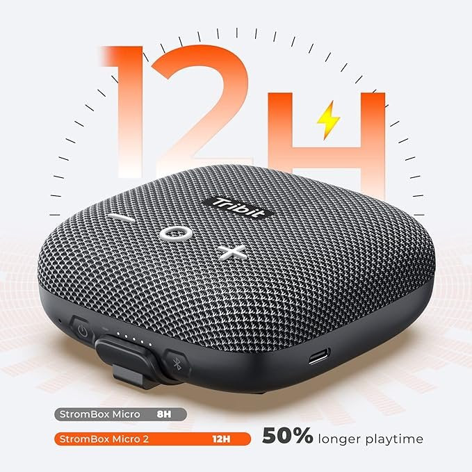 Tribit StormBox Micro 2 Portable Speaker: 90dB Loud Sound Deep Bass IP67 Waterproof Small Speaker Built-in Strap, 12H Playtime Long Battery Powerbank for Outdoor Camping Biking, 120ft Bluetooth Range (UNBOXED)