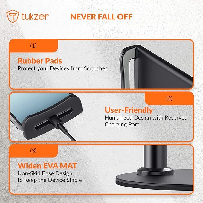 - User Friendly- Tukzer Mobile Stand Holder is Humanized Design with reserved charging port and also Rubber pads at the end to protect your Mobile, Tablets, etc.