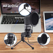 Uhuru UM-SF777 USB Condenser Gaming Microphone, Computer Mic Kit for Recording Podcasting with Tripod Stand and Pop Filter (Black)