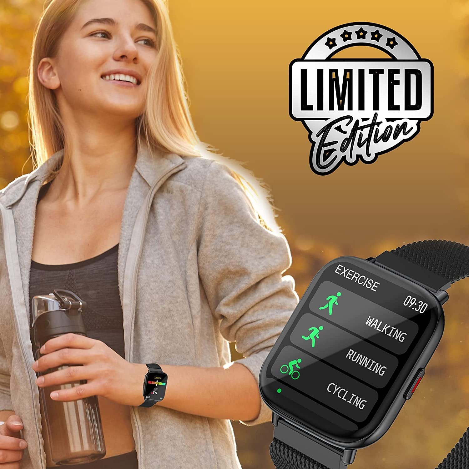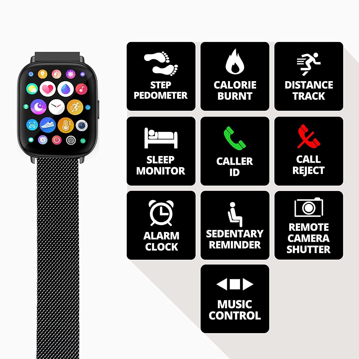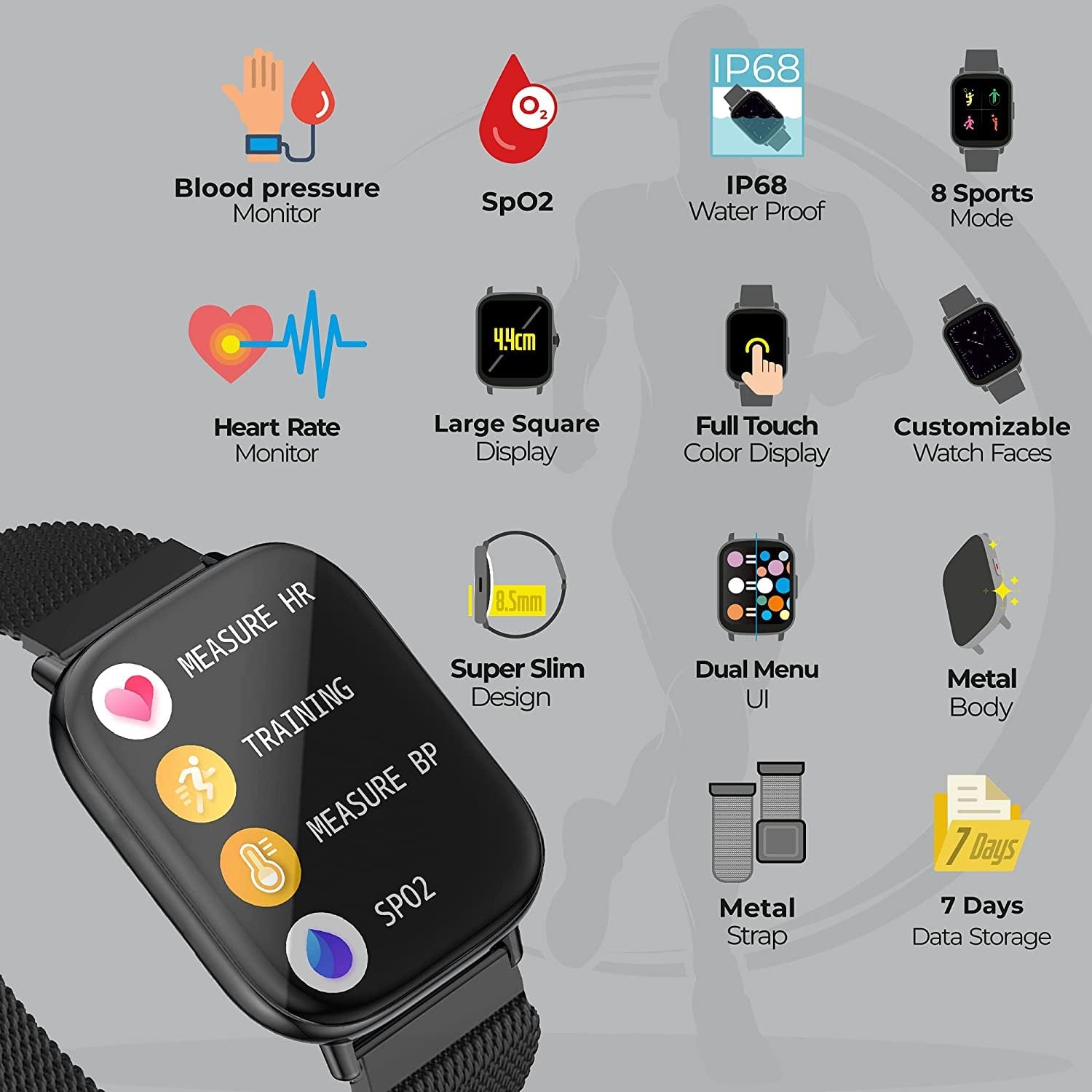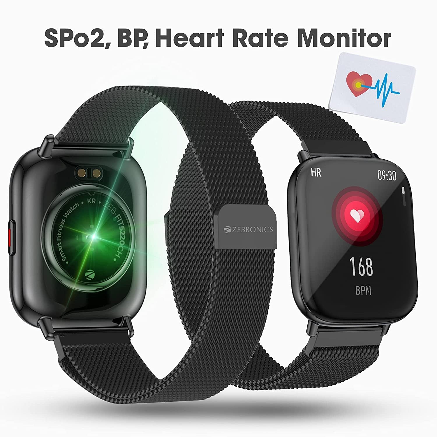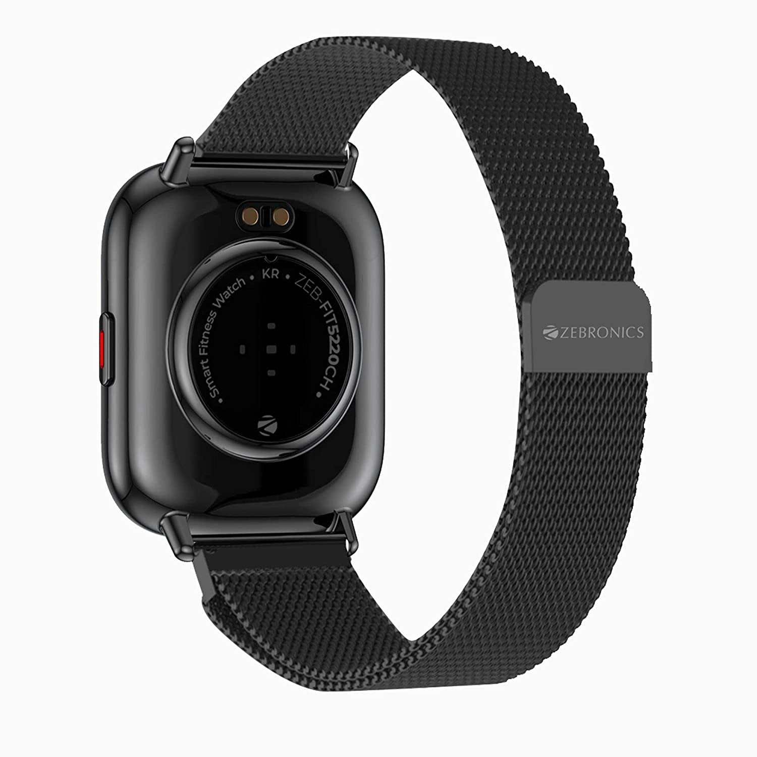 Zebronics Zeb-FIT5220CH Smart Fitness Watch, 2.5D Curved Glass 4.4cm Large Square Display, Metal Body, Dual Menu UI, 7-Day Data Storage, 8 Sports Mode, SpO2(black metal)