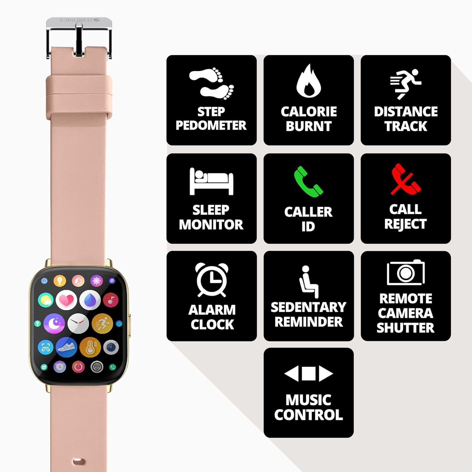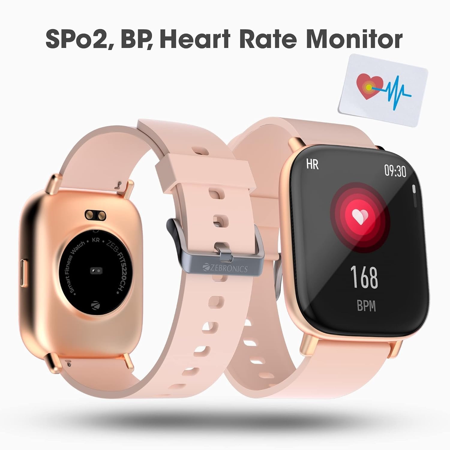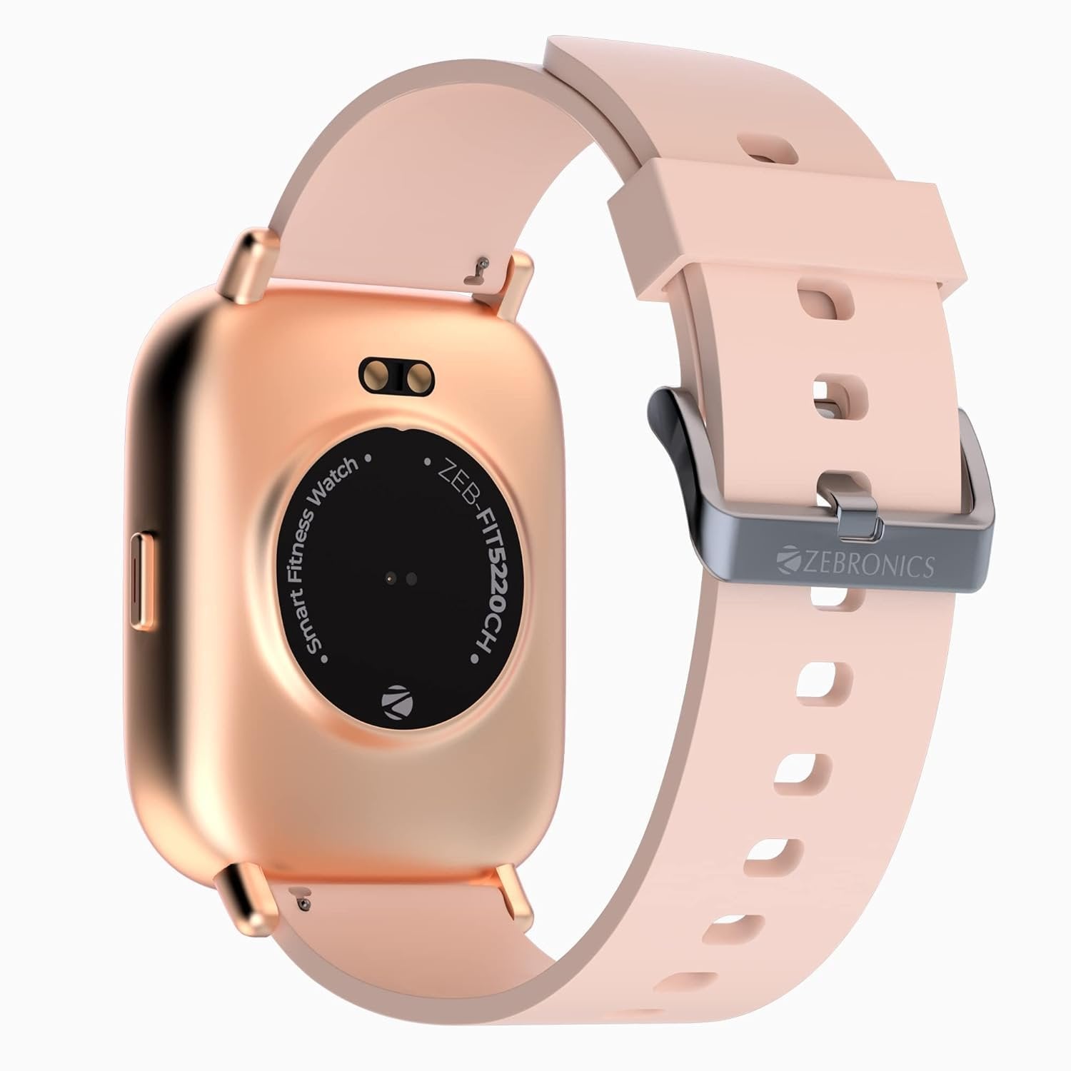 ZEBRONICS Zeb-FIT5220CH Smart Fitness Watch, 2.5D Curved Glass 4.4cm Large Square Display, Metal Body, Dual Menu UI, 7-Day Data Storage, 8 Sports Mode, SpO2, BP & HR Monitor, (Gold)